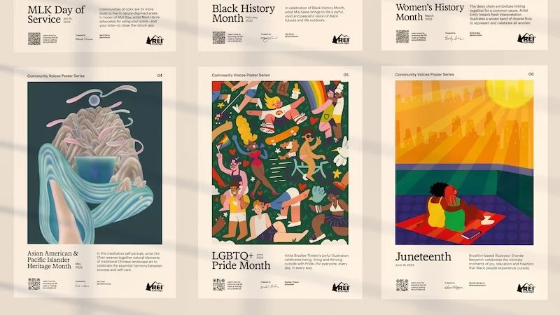 Strategy + Solution: We weaved together a tapestry of voices across our inclusion networks, our customers, our employees, and more to give voice to REI’s outside community voices series. Existing in the space between lived outdoor experiences and artist-led commissioned artworks, we set out to spark dialogue around what it means to come as you are, and be outside. Taken together, they form a mosaic of the outdoors that re-centers its meaning around the plurality of experiences that are had out there.